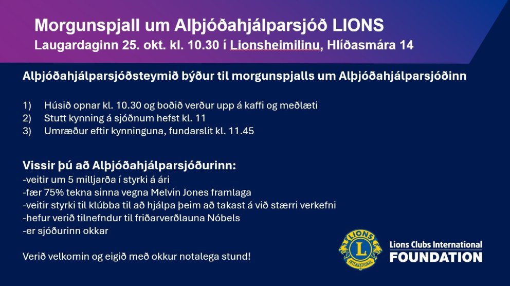 Lions er alþjóðleg hreyfing en um leið skemmtilegur félagsskapur sem leggur öðrum lið þegar á þarf að halda.