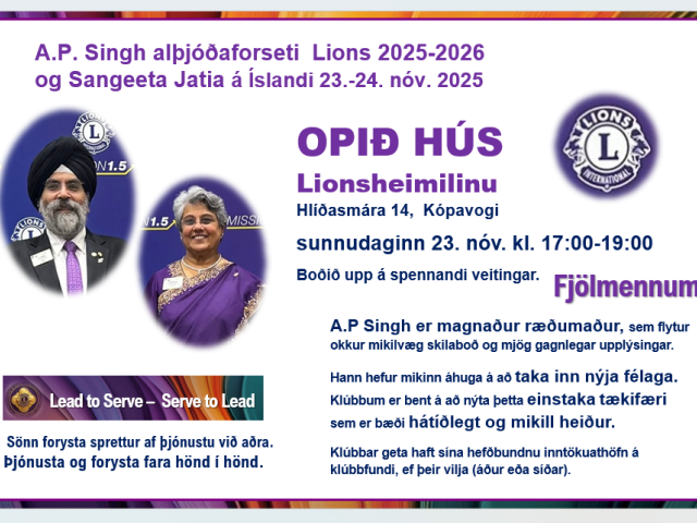 A.P. Singh alþjóðaforseti og Sangeeta Jatia á opnu húsi í Lionsheimilinu
